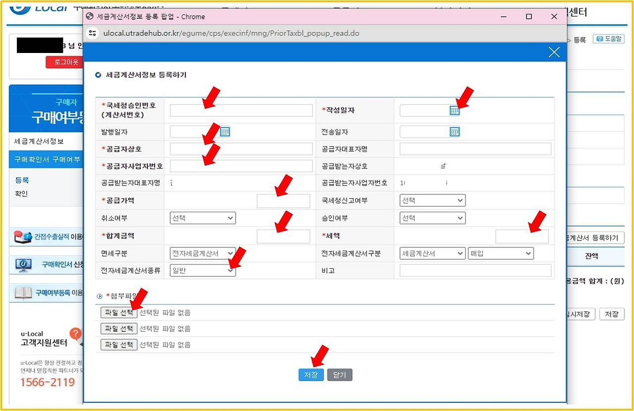 " 파일선택 " 에는 영세율 세금계산서 캡쳐해서 파일 업로드 하고 저장하면 됩니다.