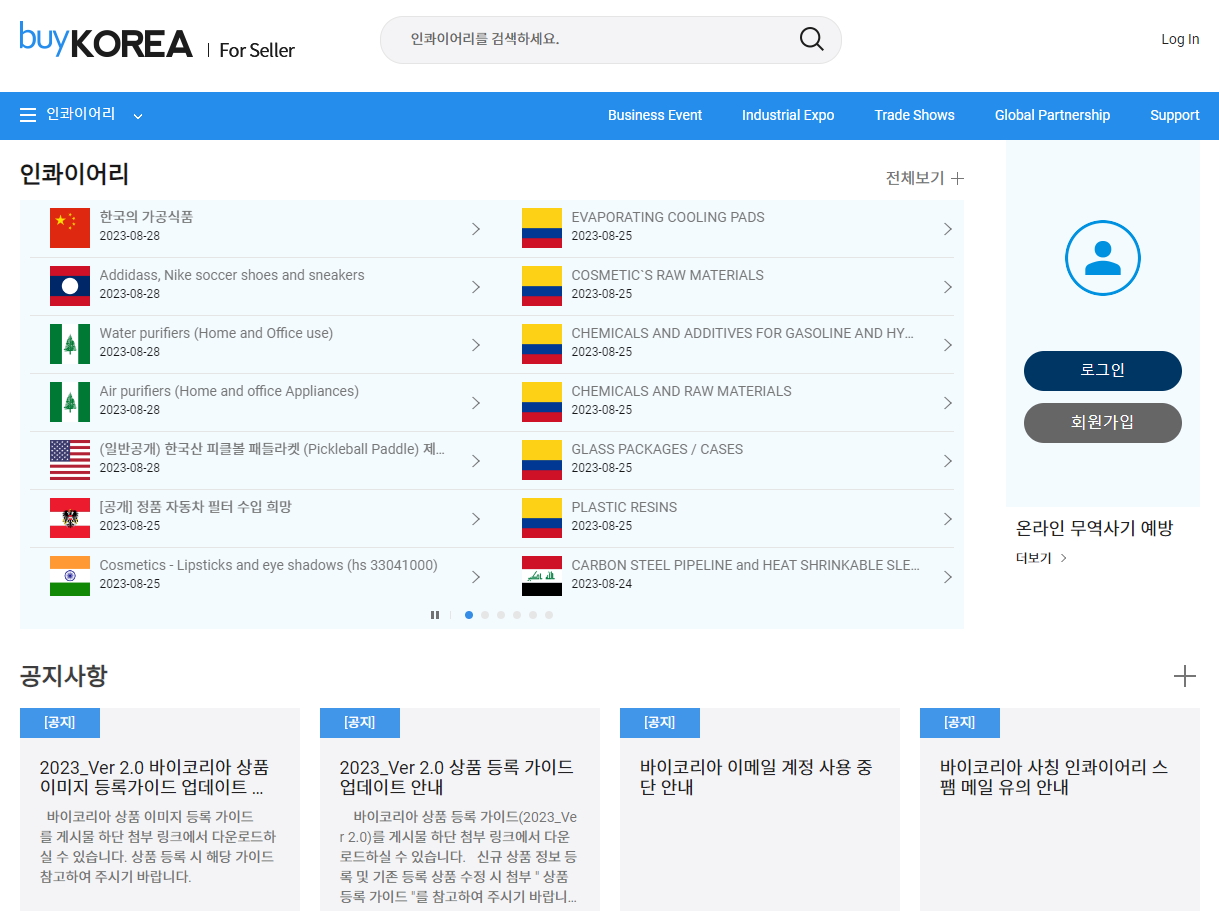 수출을 준비하는 사업자는 필수적으로 가입 및 등록을 함으로써 회사를 알릴 수 있는 기회를 제공하며 해외 바이어로부터 인콰이어리를 받을 수 있고 거래성사를 이뤄낼 수 있습니다.