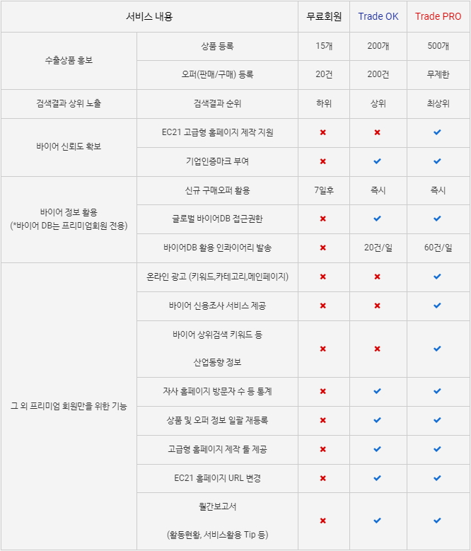 대표적인 국내 무료 무역거래알선(B2B온라인플랫폼)인 EC21, TradeKorea, BuyKorea, Gobiz Korea 등이 있습니다.
