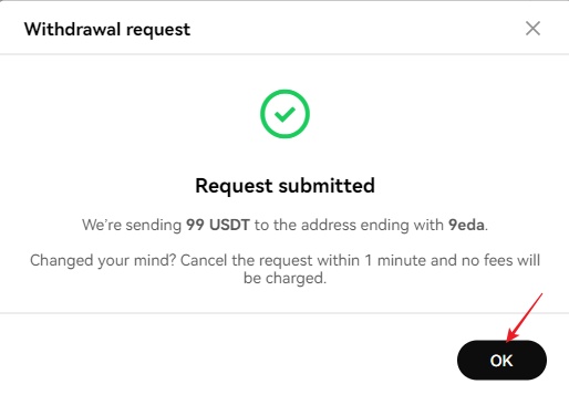 다시 confirm하면 Withdrawal request (인출 요청)에 ok 누르면 됩니다.