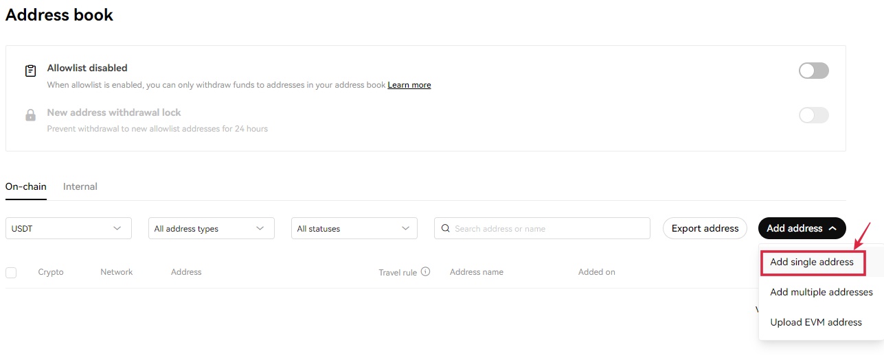 3. " Mange address book "를 클릭하고 아래의 화면에서 " Add single address "을 클릭합니다.