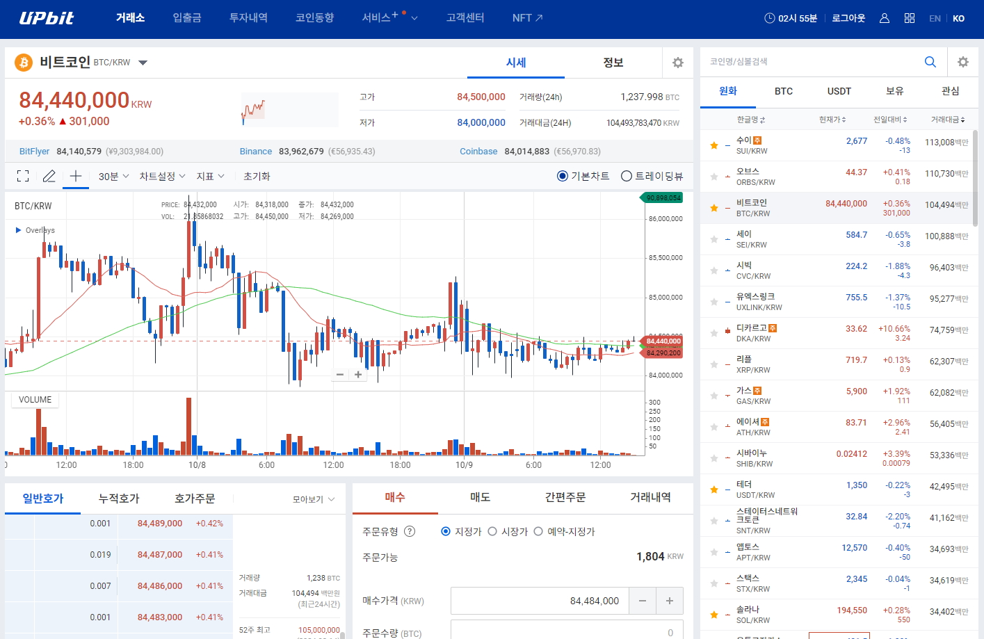 로그인해서 거래소를 클릭하면 아래와 같습니다.