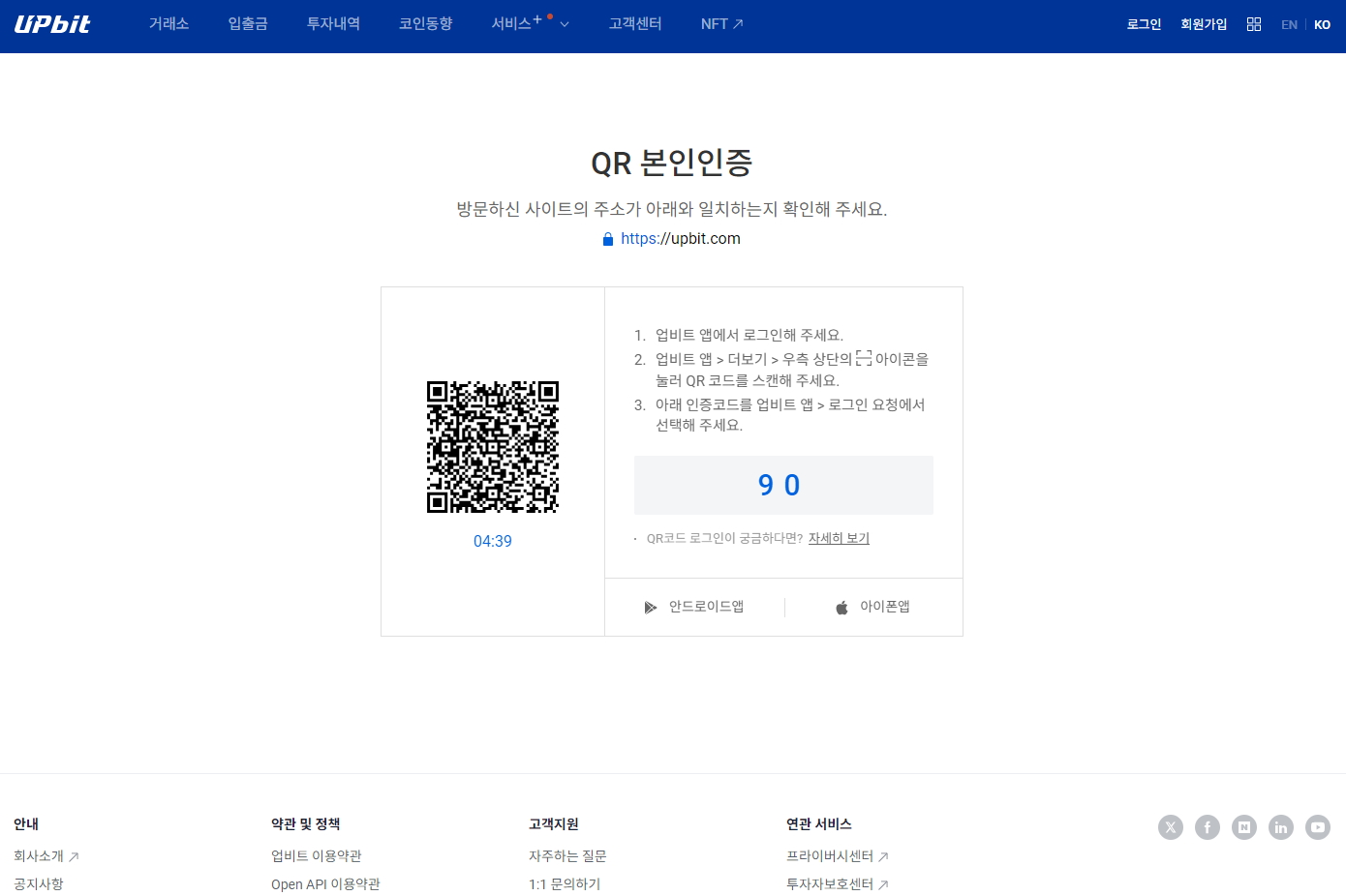핸드폰 업비트 앱을 통하여 로그인을 진행합니다.