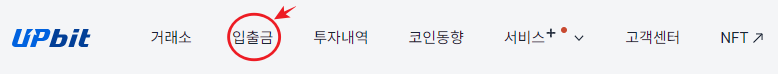 1. 업비트에 접속하여 왼쪽 상단에 " 입출금 " 을 클릭합니다.