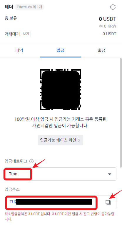 [ Address ] 업비트의 Tron 입금주소