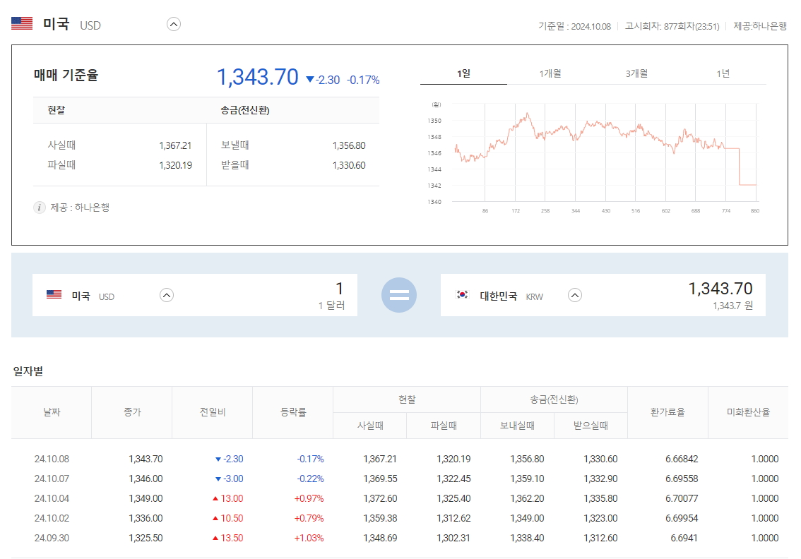 오히려 현재 미국달러 (USD) 환율보다 더 높은 경우가 많습니다. 아래의 오늘자 환율을 살펴봅니다.