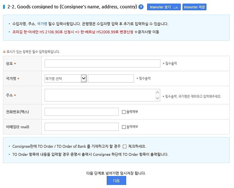 기입을 다 하고 하단에 ' 다음 '을 클릭합니다.