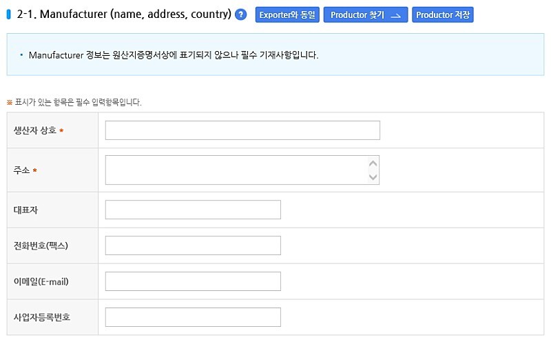 여기서 원산지 인증수출자 인증번호가 있으면 기입하고 없으면 기입할 필요가 없습니다.